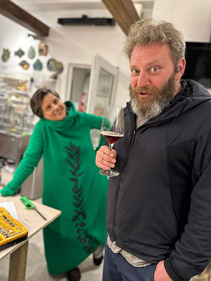 We both studied geochemistry at Moscow State University in Russia. Afterward, we moved to the USA where Dima earned his PhD in mineral physics, and Katya began her career in User Experience and joining a pottery collective. In 2007, we relocated to the UK. By 2022, we had constructed an extension to our home to house our purpose-built ceramics studio.